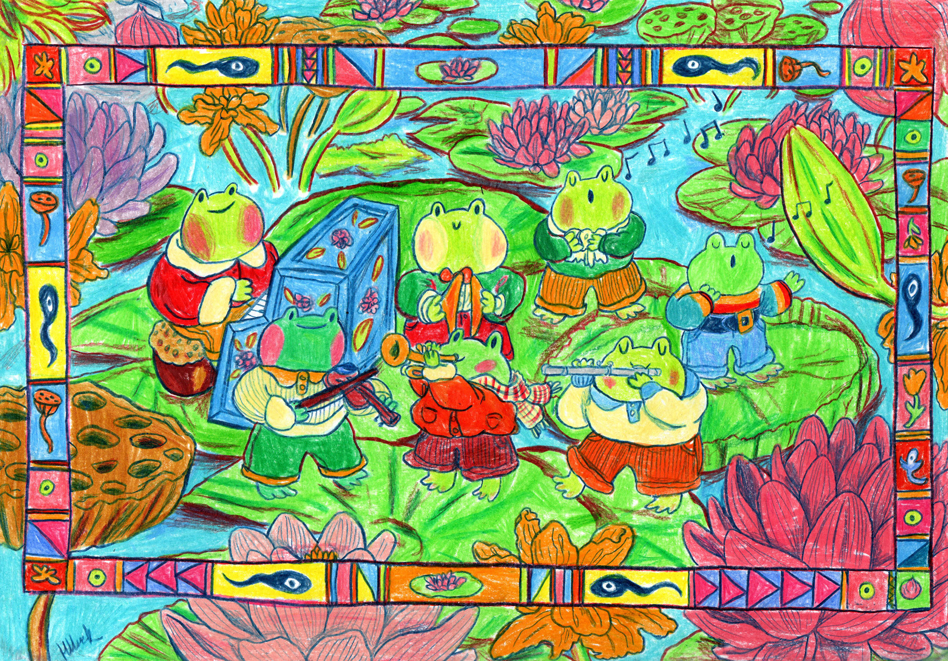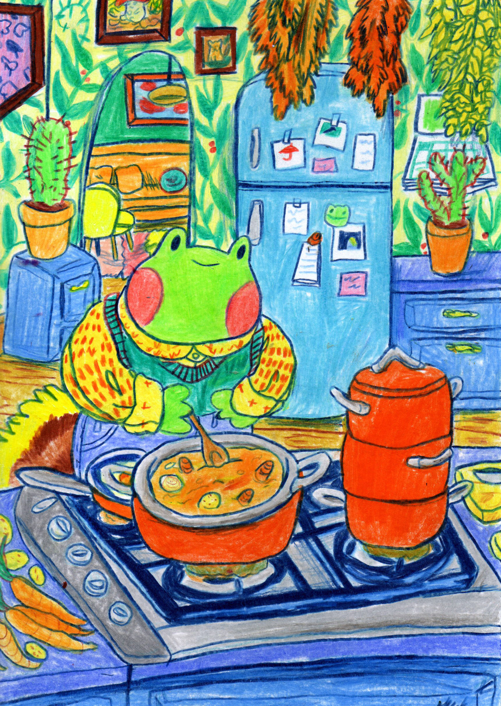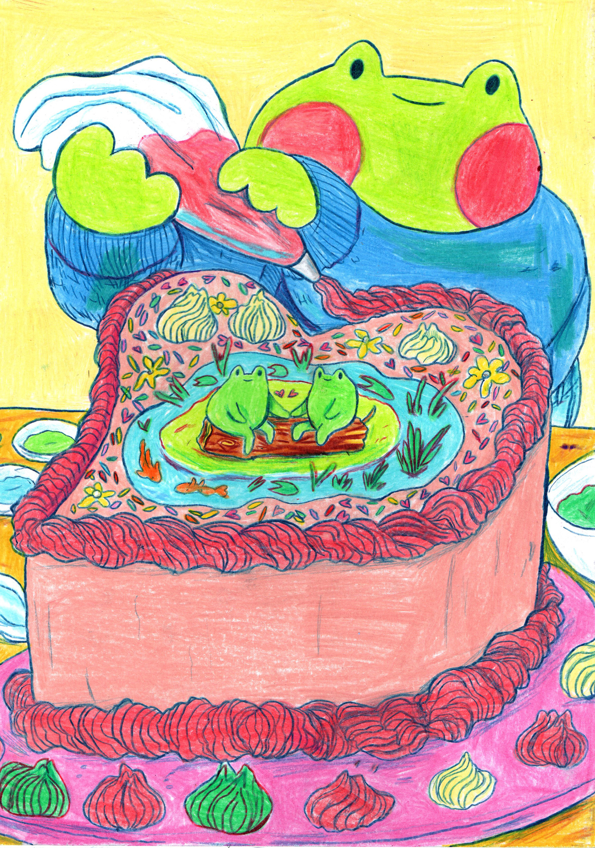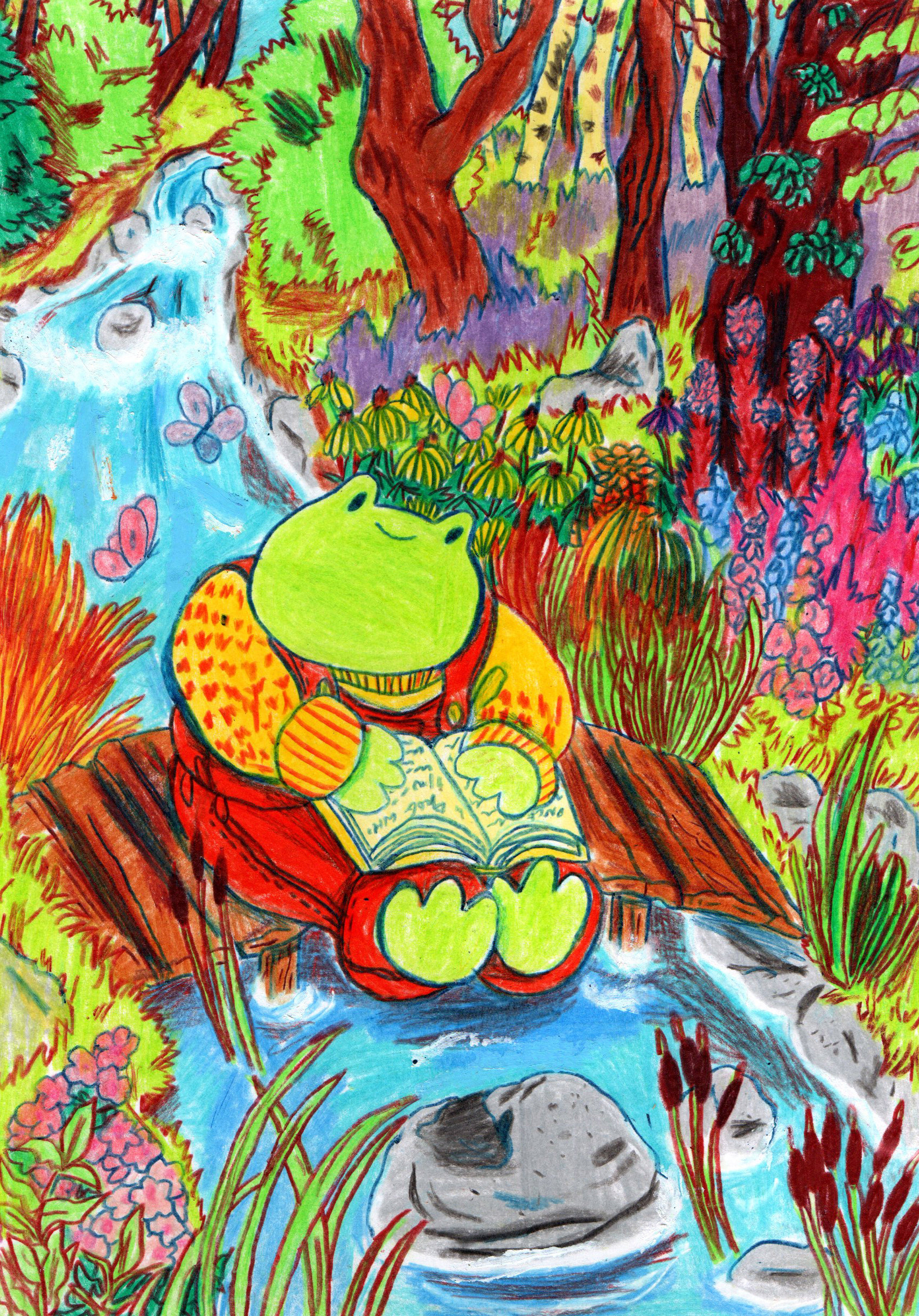 Illustrations of frog friends, some privately commissioned and others are personal work.