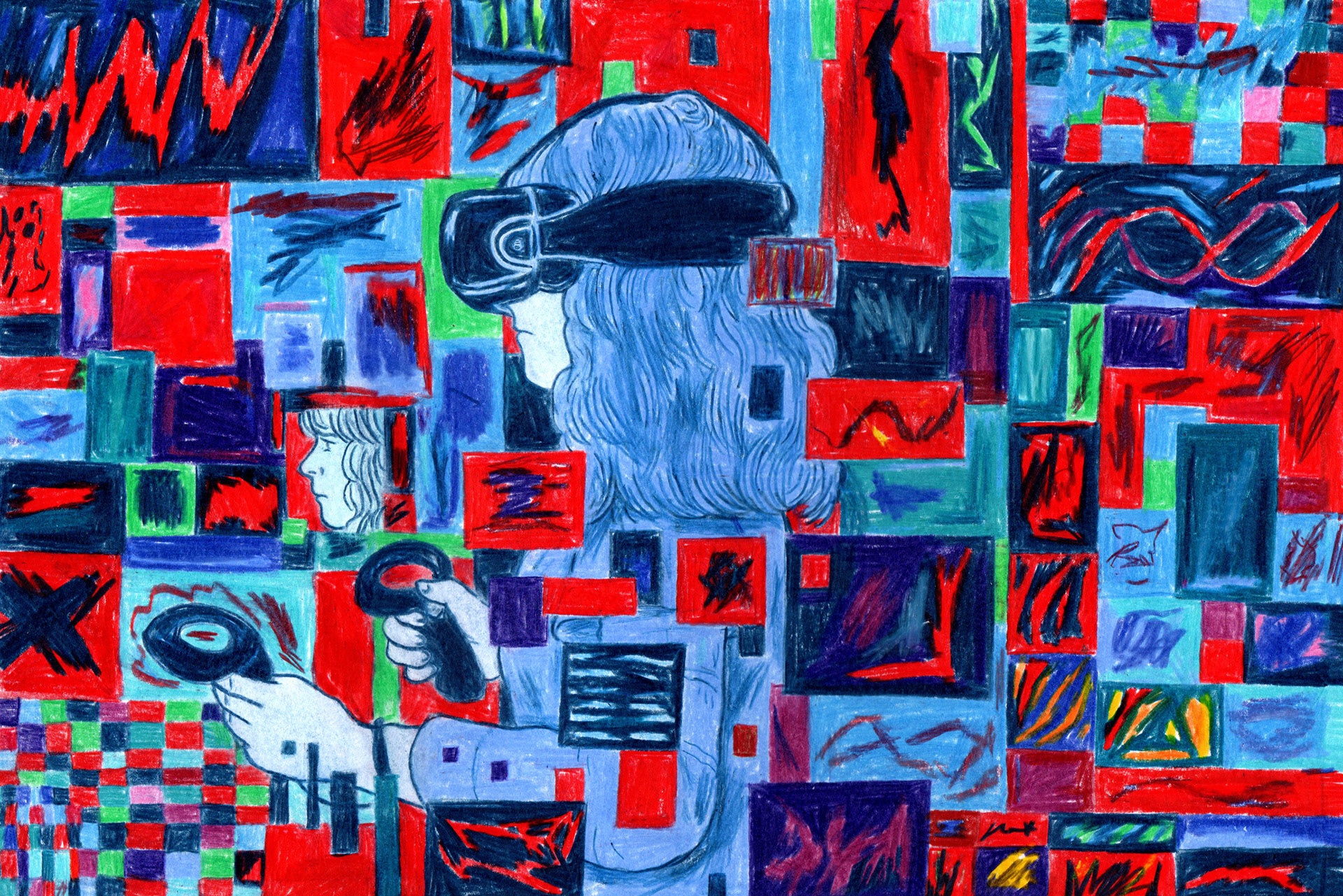 Illustration for the New York Times Business Review, on questions around potential abuse within VR and the Metaverse.