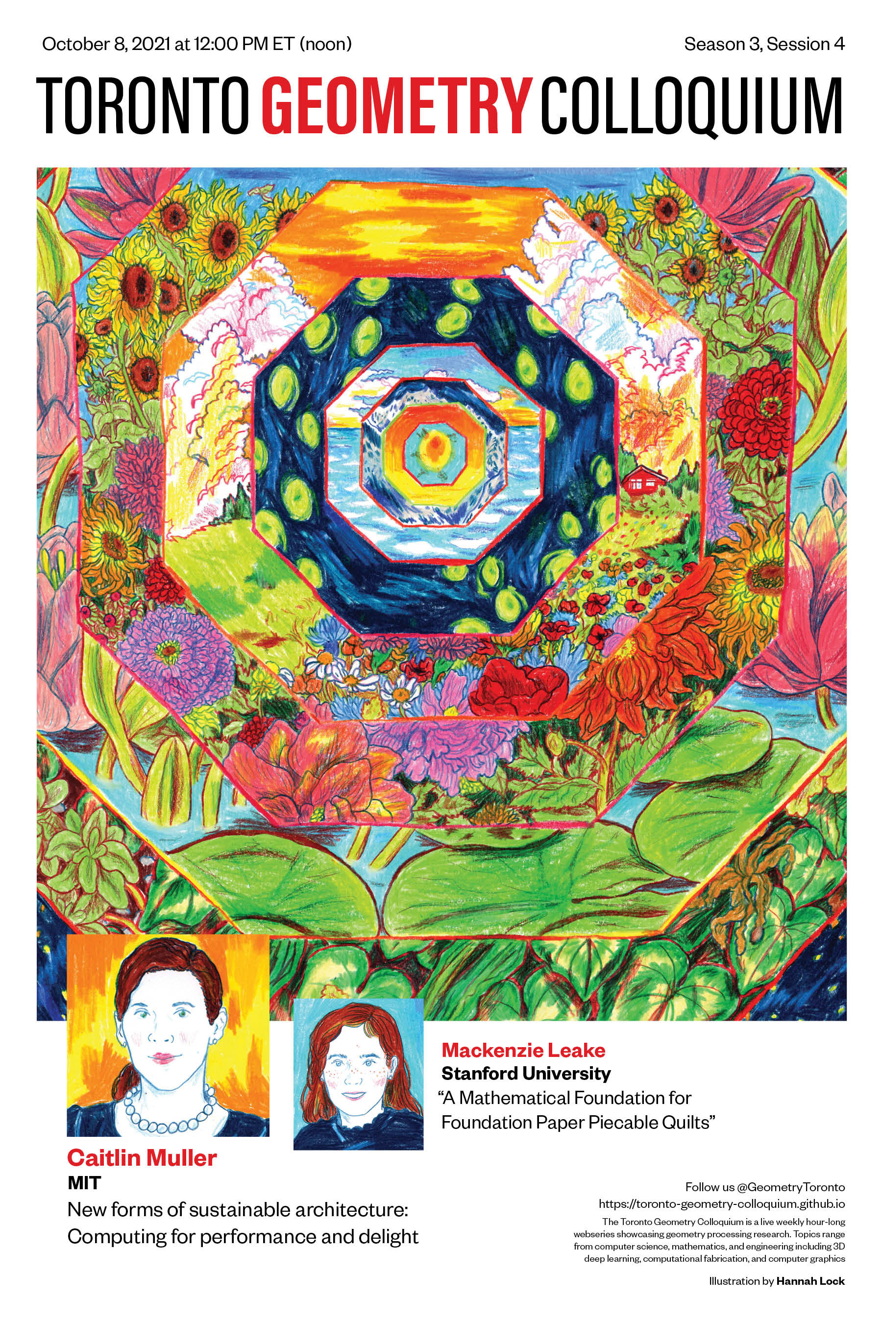 Portrait illustrations and abstract main illustration imagining virtual shapes in reality.